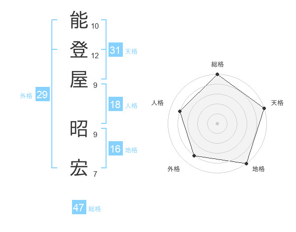 能登屋 昭宏さんを姓名の画数から五運を鑑定