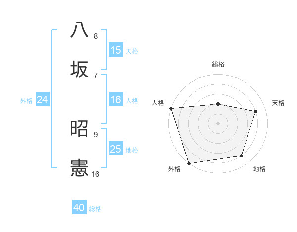八坂 昭憲さんを姓名の画数から五運を鑑定