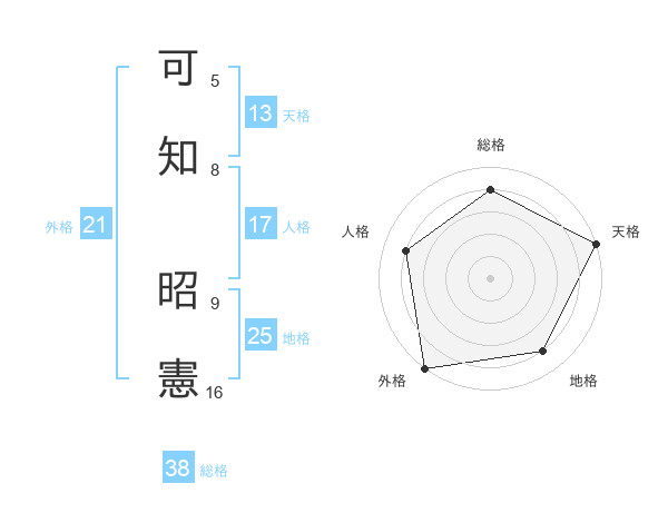 可知 昭憲さんの外格は21画の5点!