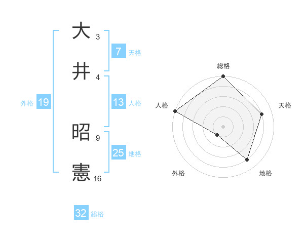 大井 昭憲さんの総格は32画の5点!