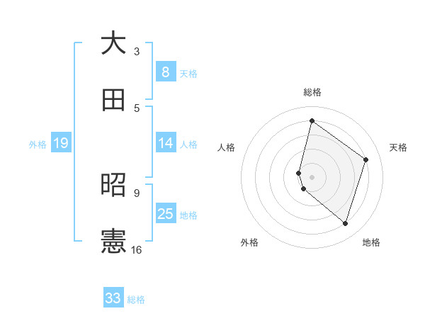 大田 昭憲さんの天格は8画の4点!