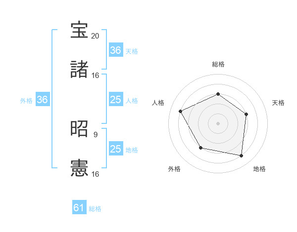 宝諸 昭憲さんの総格は61画の3点!