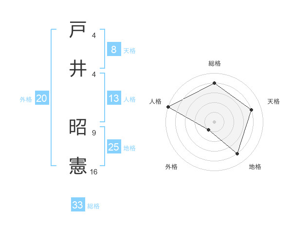 戸井 昭憲さんを姓名の画数から五運を鑑定
