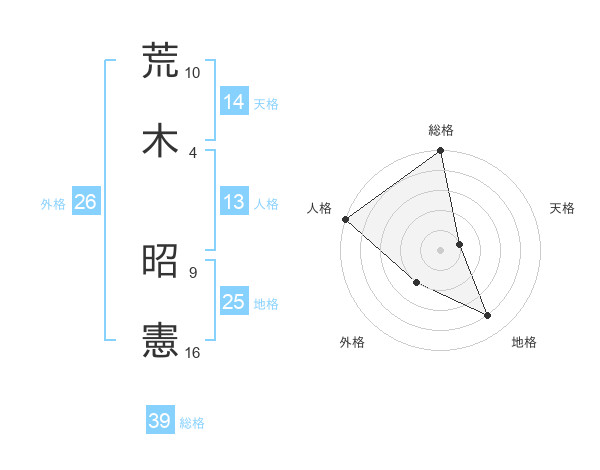 荒木 昭憲さんの天格は14画の1点!