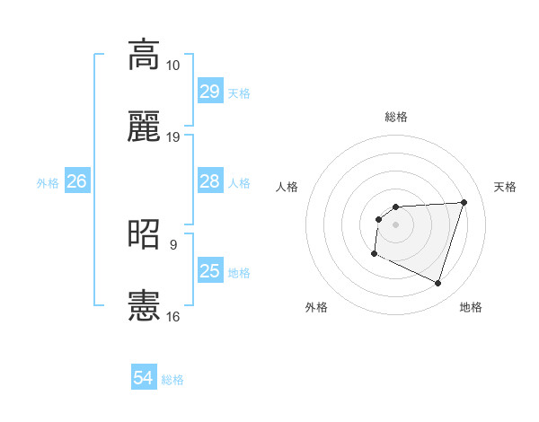 高麗 昭憲さんの総格は54画の1点!