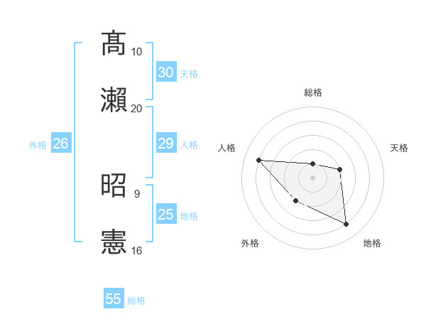 髙瀨 昭憲さんの総格は55画の1点!
