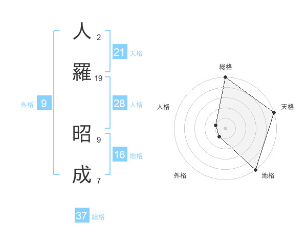 人羅 昭成さんを姓名の画数から五運を鑑定
