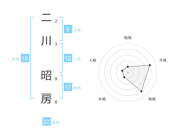 二川 昭房さんを姓名の画数から五運を鑑定