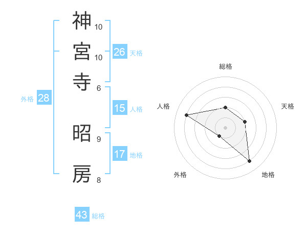 神宮寺 昭房さんの総格は43画の2点!