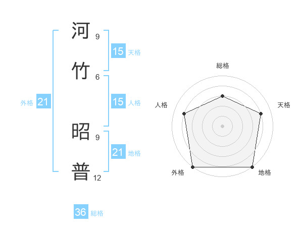 河竹 昭普さんを姓名の画数から五運を鑑定