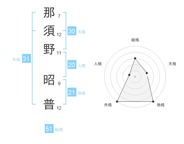 那須野 昭普さんを姓名の画数から五運を鑑定