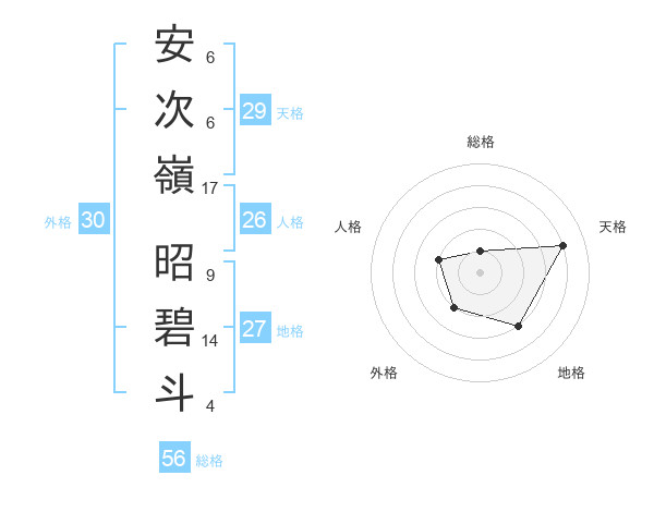 安次嶺 昭碧斗さんを姓名の画数から五運を鑑定