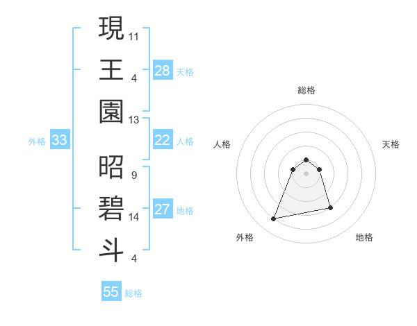 現王園 昭碧斗さんを姓名の画数から五運を鑑定