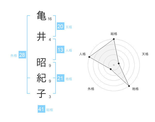 亀井 昭紀子さんを姓名の画数から五運を鑑定