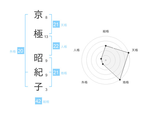 京極 昭紀子さんの天格は21画の5点!