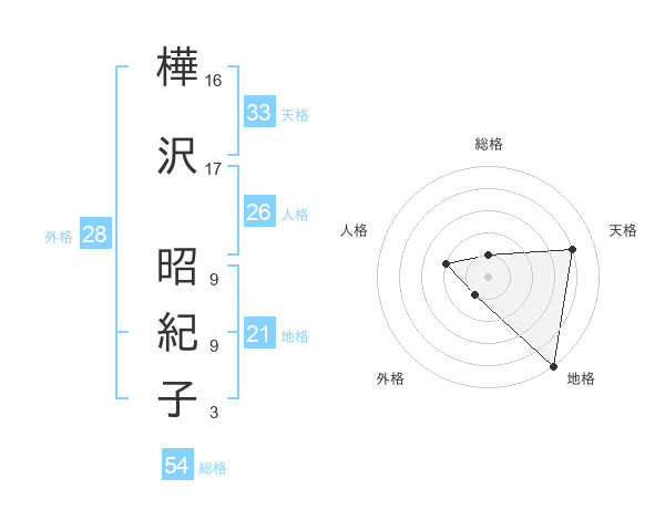 樺沢 昭紀子さんの天格は33画の4点!