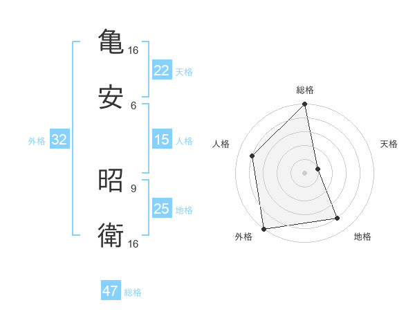 亀安 昭衛さんを姓名の画数から五運を鑑定