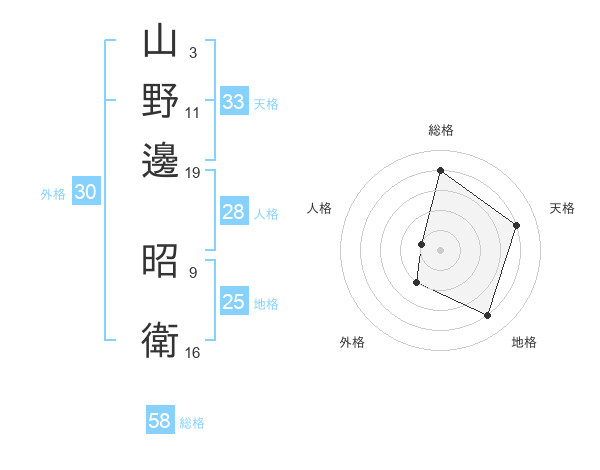山野邊 昭衛さんの総格は58画の4点