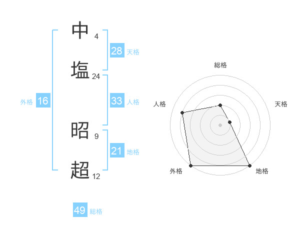 中塩 昭超さんを姓名の画数から五運を鑑定