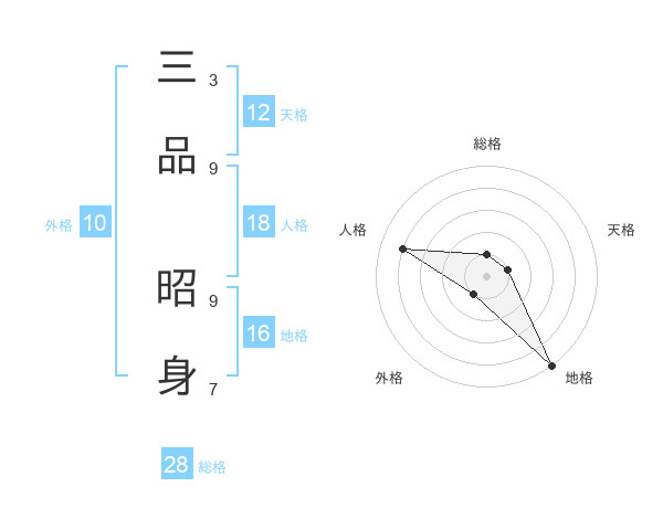 三品 昭身さんの総格は28画の1点!