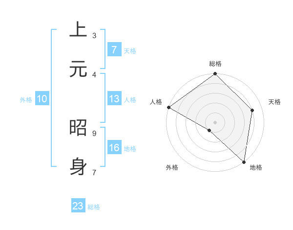 上元 昭身さんの総格は23画の5点!