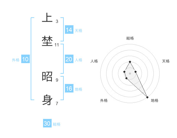 上埜 昭身さんの総格は30画の2点!