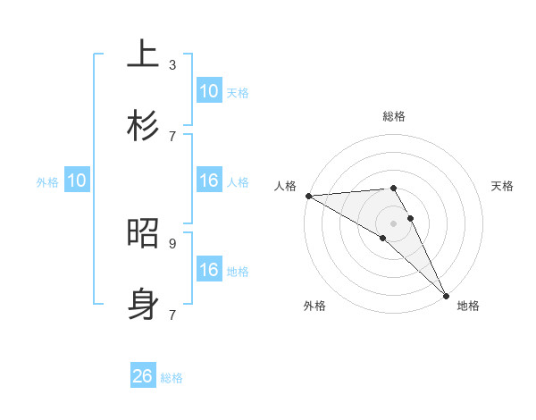 上杉 昭身さんの総格は26画の2点!