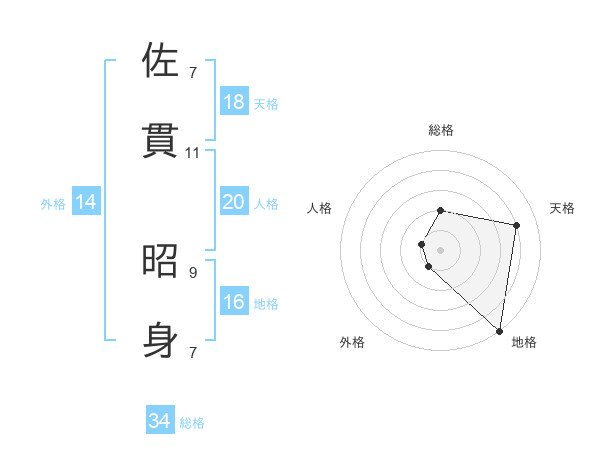 佐貫 昭身さんの総格は34画の2点!