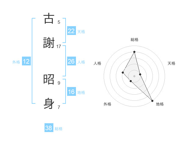 古謝 昭身さんを姓名の画数から五運を鑑定
