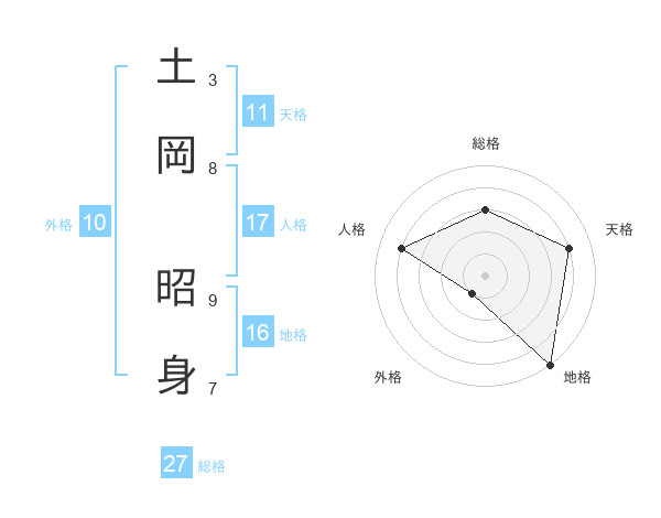 土岡 昭身さんを姓名の画数から五運を鑑定
