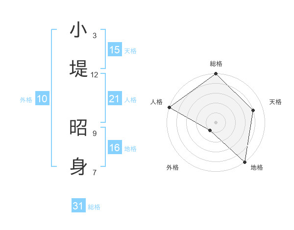 小堤 昭身さんを姓名の画数から五運を鑑定