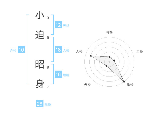 小迫 昭身さんを姓名の画数から五運を鑑定