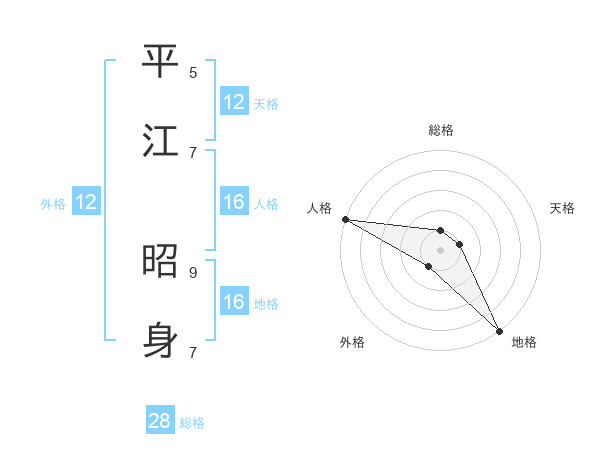 平江 昭身さんの地格は16画の5点!