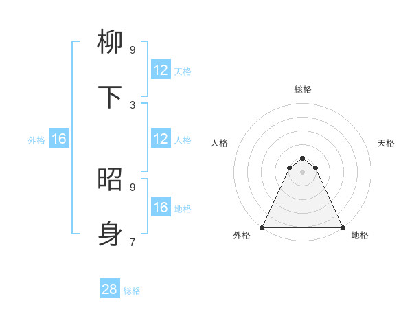 柳下 昭身さんの天格は12画の1点!