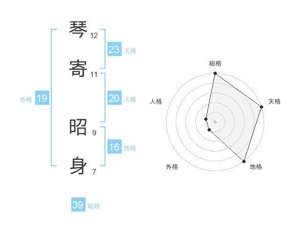 琴寄 昭身さんを姓名の画数から五運を鑑定
