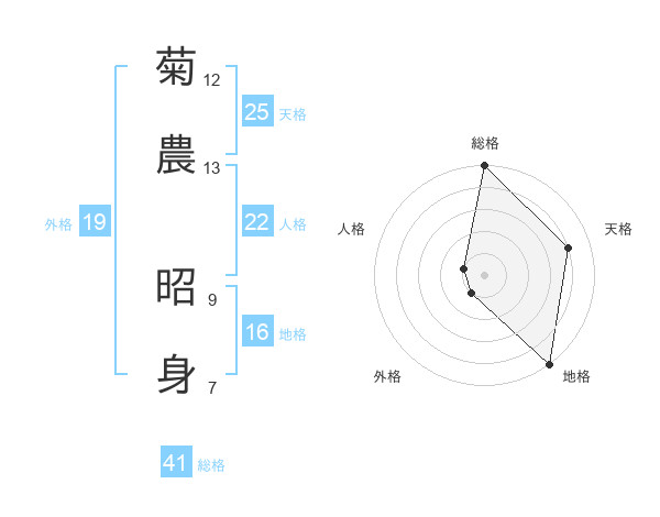 菊農 昭身さんの総格は41画の5点!