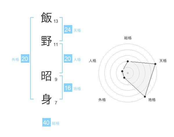 飯野 昭身さんの天格は24画の5点!
