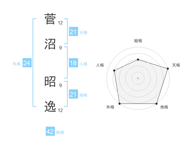 菅沼 昭逸さんの天格は21画の5点!