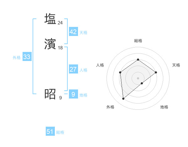 塩濱 昭さんの総格は51画の3点!