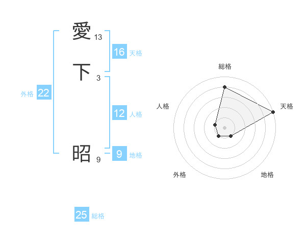 愛下 昭さんの外格は22画の1点!