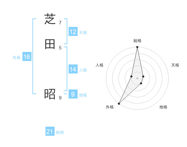芝田 昭さんの総格は21画の5点!
