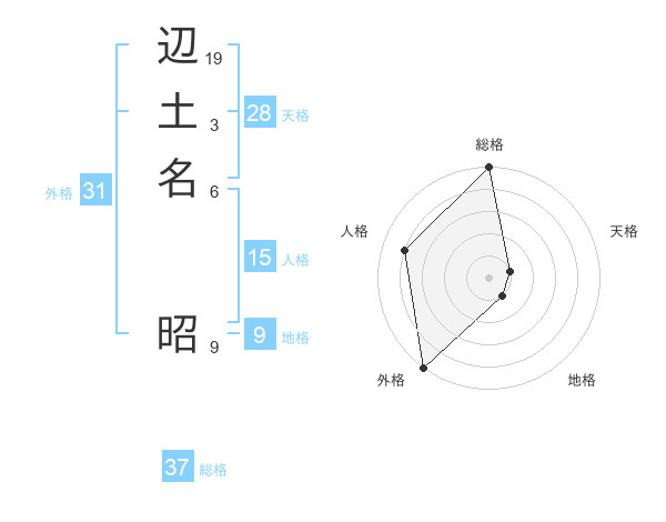 辺土名 昭さんを姓名の画数から五運を鑑定