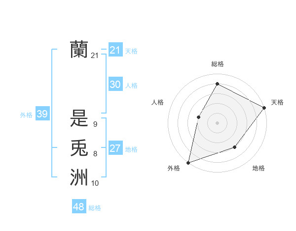 蘭 是兎洲さんの天格は21画の5点!