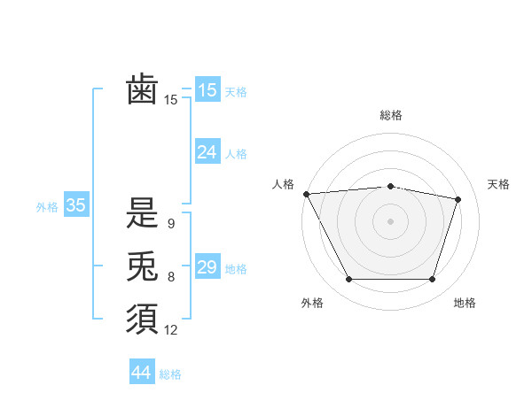 歯 是兎須さんの外格は35画の4点!