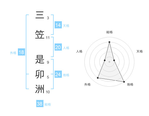 三笠 是卯洲さんを姓名の画数から五運を鑑定