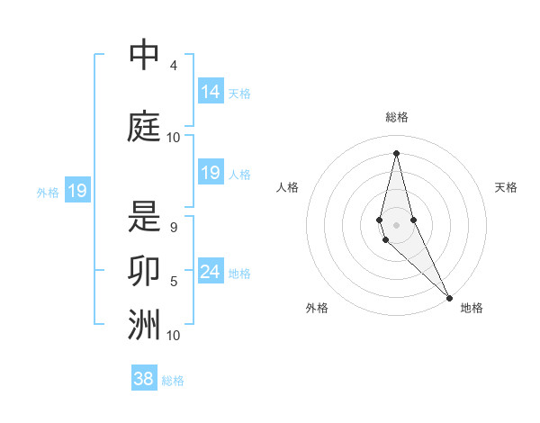 中庭 是卯洲さんを姓名の画数から五運を鑑定