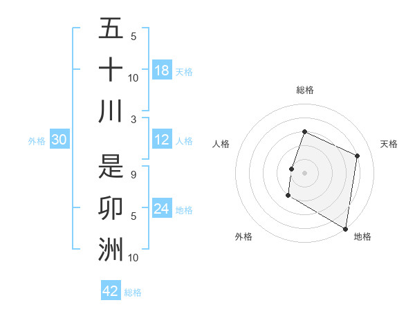 五十川 是卯洲さんの総格は42画の3点!