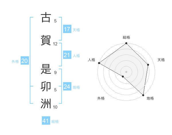 古賀 是卯洲さんの天格は17画の4点!