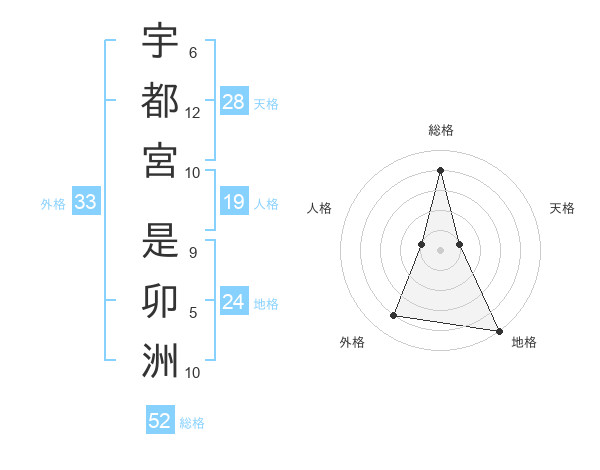 宇都宮 是卯洲さんを姓名の画数から五運を鑑定