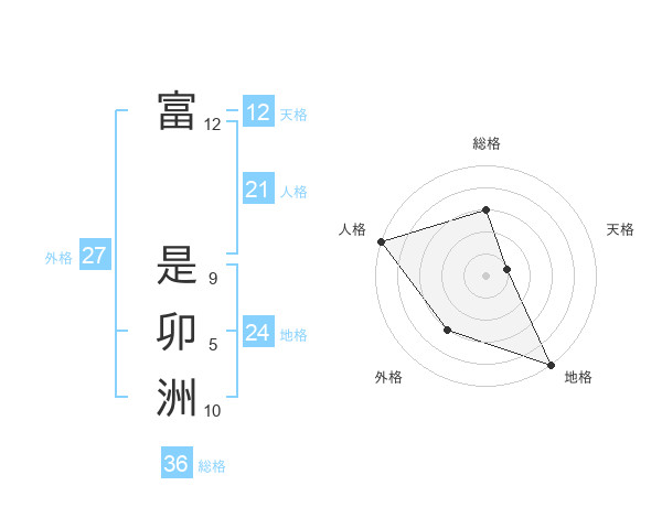 富 是卯洲さんを姓名の画数から五運を鑑定